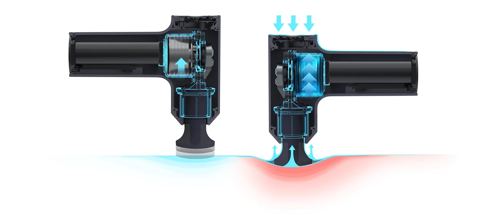 Высокоскоростной бесщеточный мотор воздействует на мышечную ткань на глубине более 6 мм с моментом силы 190 мН·м, помогая улучшить местное кровообращение и снять усталость.