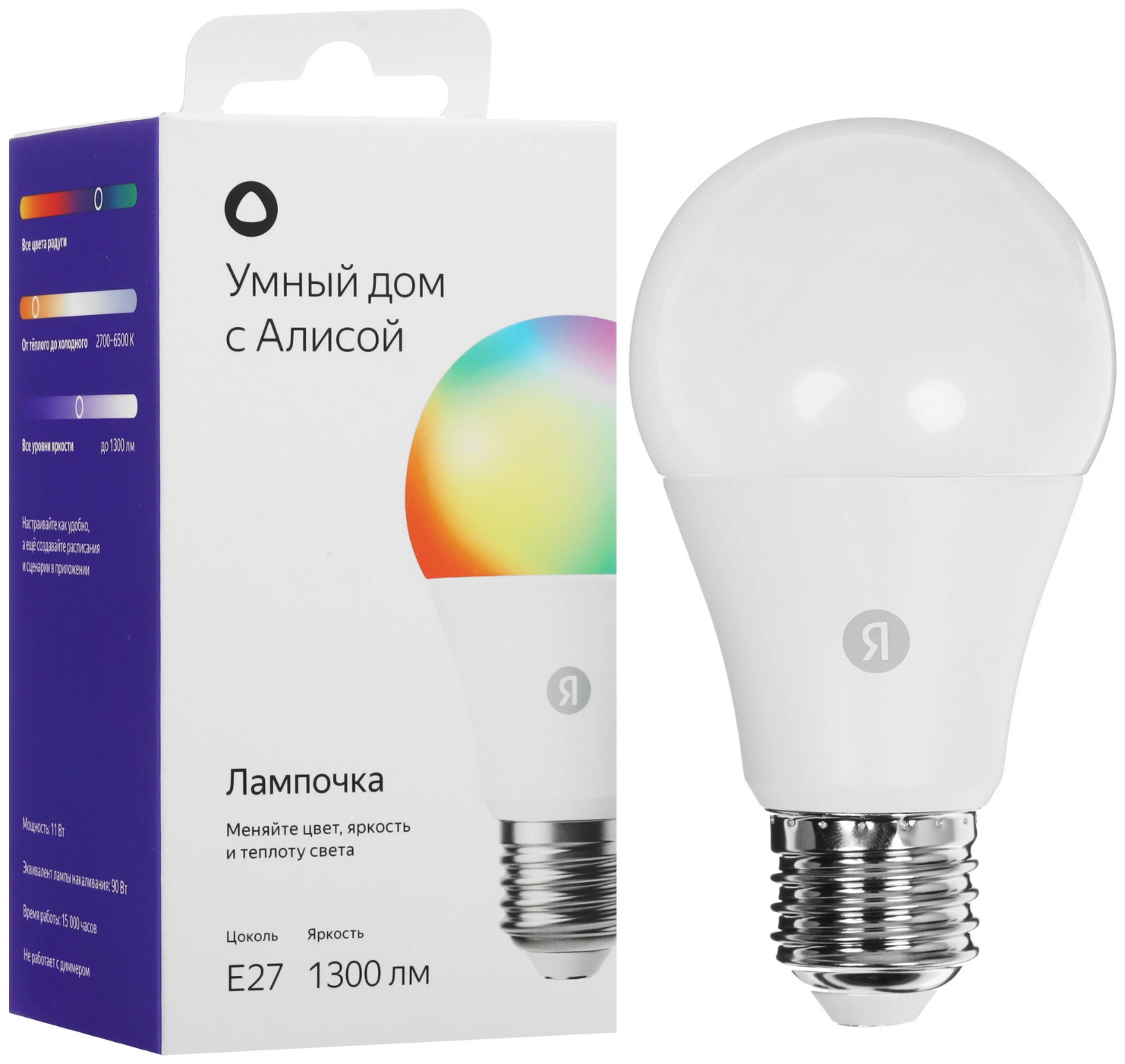 | Особенности | RGB, работает с Алисой, яркость 1300 лм, регулировка яркости, управление оттенками, управление цветом |